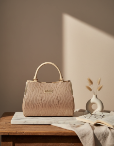 Distinctive Glitter Texture: Features a striking wavy pattern on the front panel enhanced with subtle, glittering beige/gold detail.
