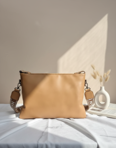 | Rear Exterior | Plain, smooth Tan/Caramel color. Includes brand tag/label (removable). |